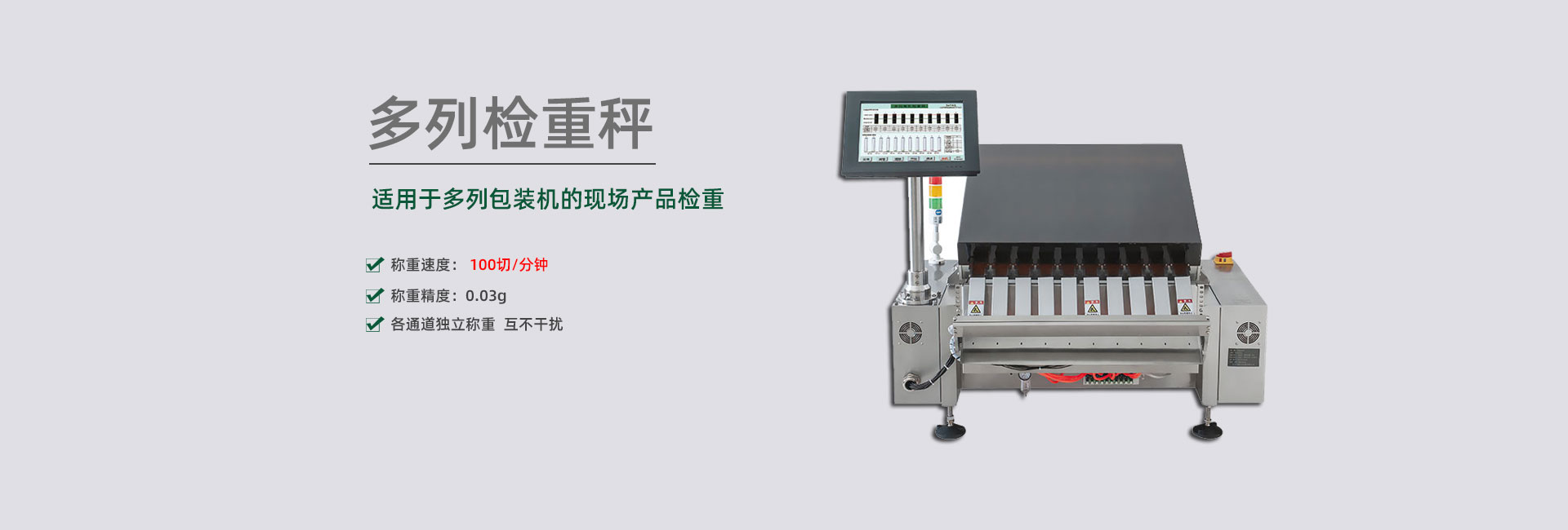 擁有各種剔除方案的專利,包括多列稱重結(jié)構(gòu)的剔除裝置,可杜絕不合格品誤通過,準確剔除各種高速、超薄、片狀、易碎,軟包、空包等物品,包括多列高速產(chǎn)品。
